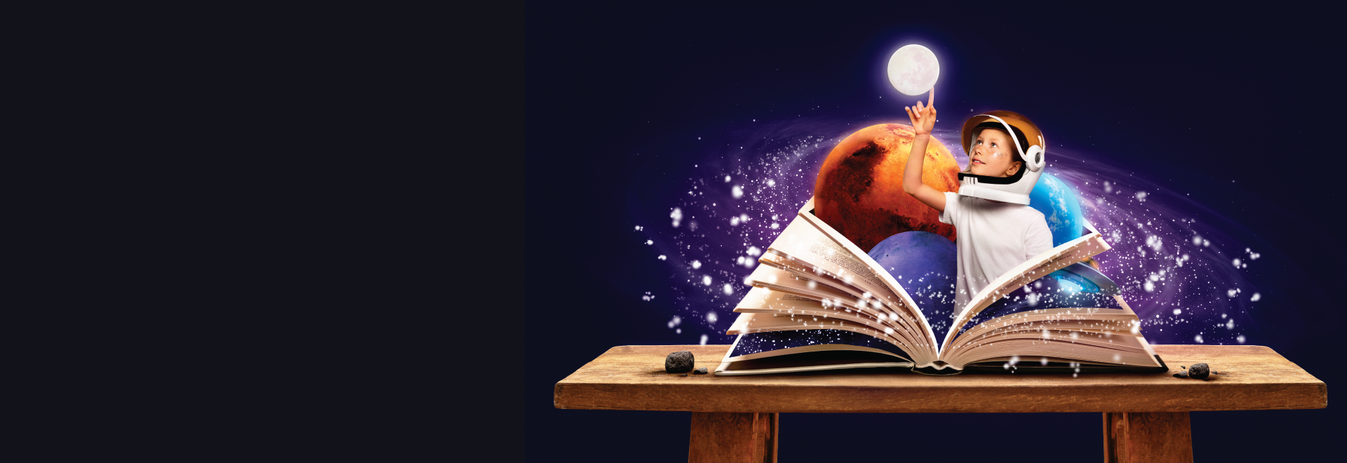 تماماً كما يجد المستكشفون كنوزاً مخبأة في الصحراء، نؤمن أن كل طفل يمكنه اكتشاف أشياء مذهلة في كُتبنا. كل قصة نبتكرها هي بمثابة خريطة سحرية تقود إلى أفكار جديدة وأحلام مدهشة.